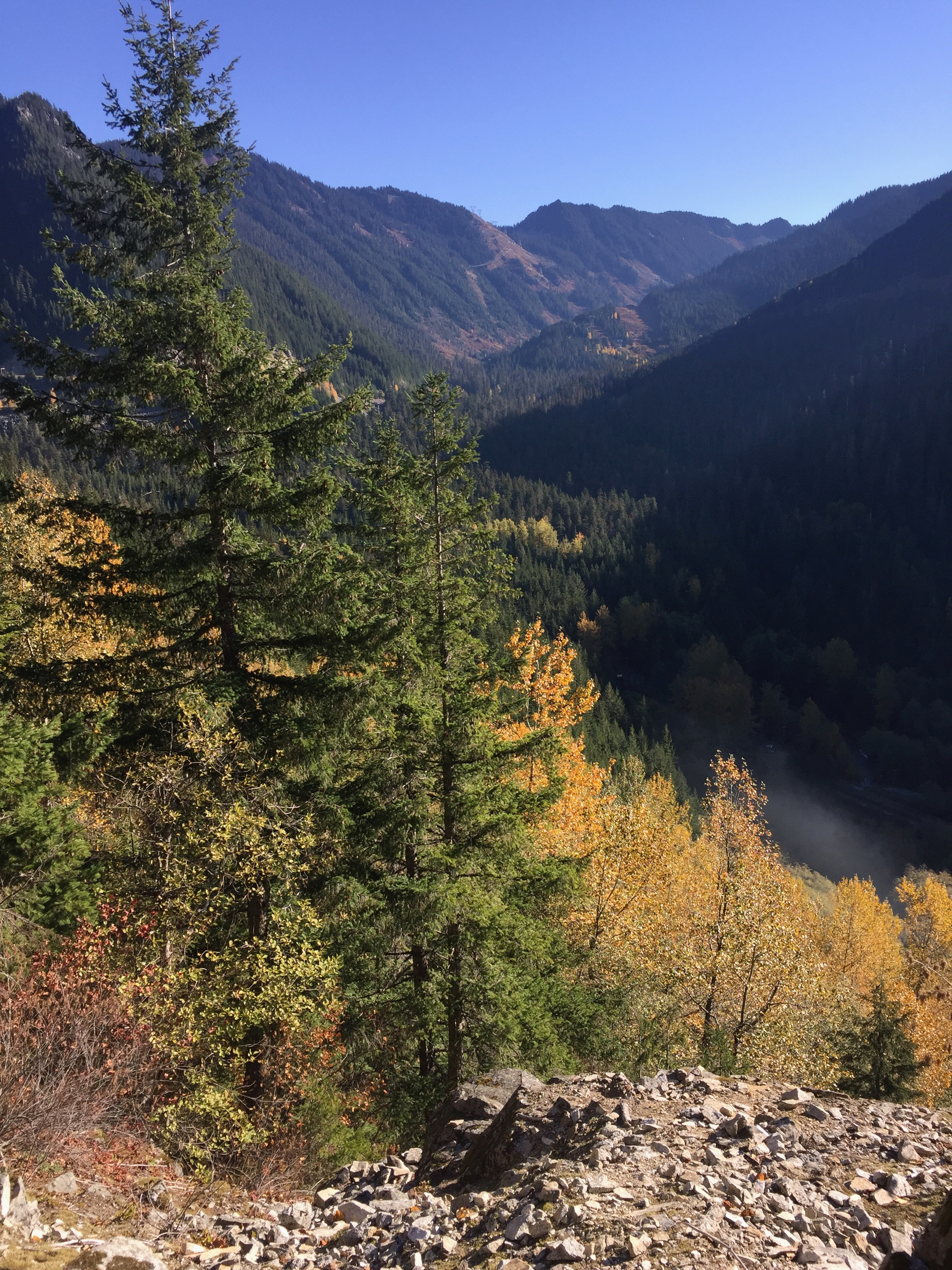 Our short walk brought us to the most interesting part of the trail. Here the canyon and river narrowed and the roar had us raising our voices to hear each other. We walked along man-made walls and train beds carved from the stone that felt like ancient ruins. Huge rusted nails rose from wood ties that have been there for over 120 years. The people who built a railroad here where looking to capitalize on the nearby mines of Monte Cristo and chose a location that was doomed to fail. To us it seemed obvious that this tight canyon was a terrible place to build a railroad, but perhaps we are much more in tune with nature than the white men of yore.